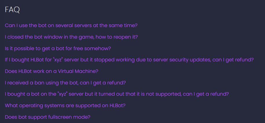 WebsiteOther modulesOn this pageOther modulesDescription of the other page modulesBot downloadThis tab is only visible for users with an active license. Here you will find download links for the latest bot version. FAQFrequently asked question. Please read this tab before buying the bot.