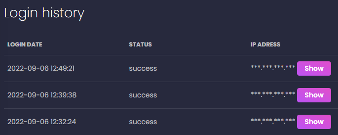 Here is the list of authorized IPs, from here you can see and delete authorized IPs